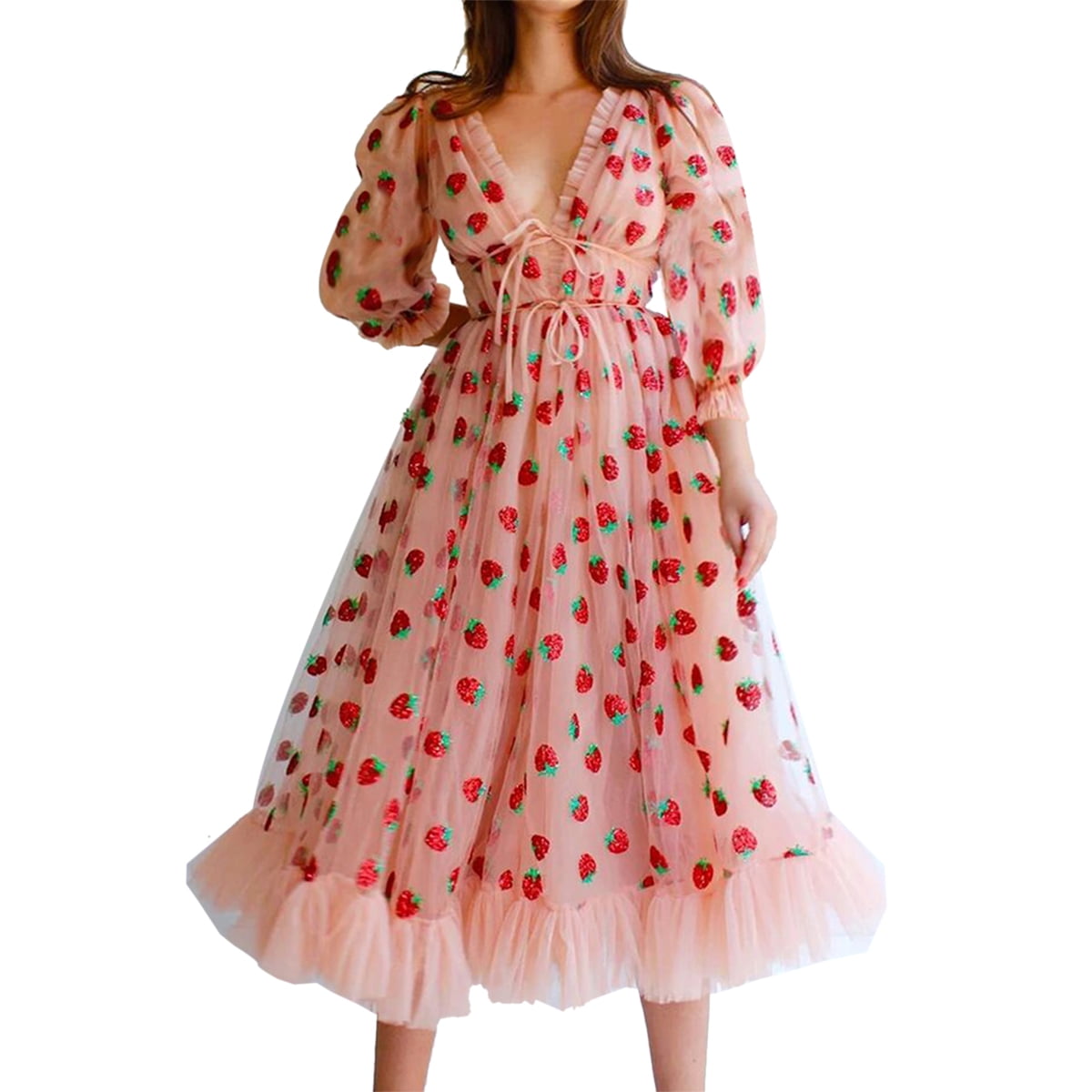 Women S Short Long Sleeve Dress V Neck Elastic Waist Dress With Embroidered Walmart Canada